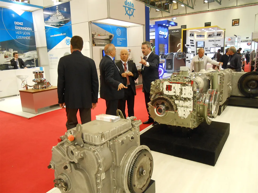 05-08 Mayıs 2015 tarihleri arasında İstanbul, Büyükçekmece Tüyap Fuar ve Kongre Merkezi’nde düzenlenen IDEF 2015 – 12. Uluslararası Savunma Sanayi Fuarı’na ALLISON TRANSMISSION firması ile birlikte katıldık. Aralarında Bilim, Sanayi ve Teknoloji Bakanı Sn. Fikri Işık, Kara Kuvvetleri Komutanı Org. Sn. Hulusi Akar, Savunma Sanayi Müsteşarı Prof. Dr. Sn. İsmail Demir’in de bulunduğu birçok üst düzey ve önemli konuk ile delegasyona faaliyetlerimiz hakkında bilgi verdik, istişarelerde bulunduk. Araç üreticisi yurt içi ve dışından birçok firma ile ikili görüşmeler yaptık, yeni iş potansiyelleri hakkında önemli temaslarda bulunduk. Fuarda 5250 MX (X7050), X200-4B çapraz tahrikli transmisyonların yanı sıra Türkiye’de üretmek istediğimiz orta ağır sınıf paletli araçlar için X300 transmisyonunu ilk defa sergiledik.